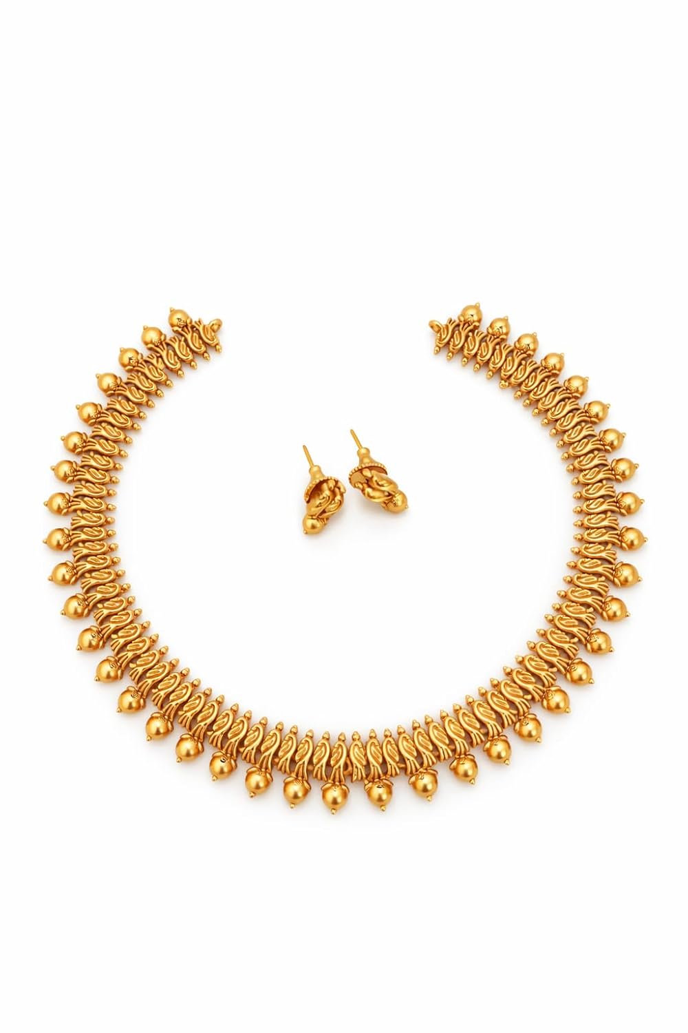 Gold Plated Traditional Choker Necklace Set for Women | Antique Style Temple Design Necklace with Matching Stud Earrings | Ethnic Jewellery for Wedding, Festival & Saree Wear ₹458.00