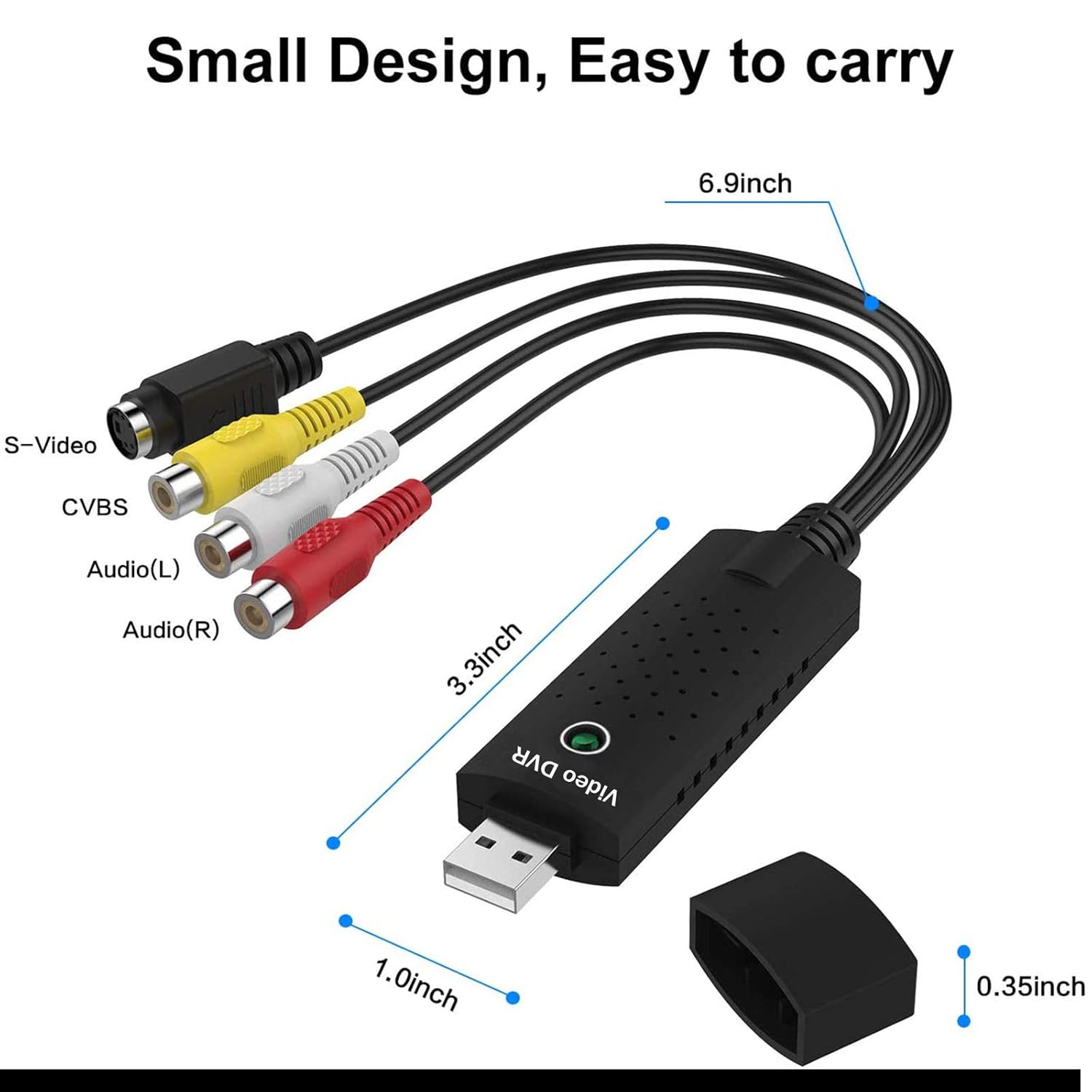 USB 2.0 Video Capture Adapter provides a link between a PC and a video device with RCA connector or S-Video connector, such VHS, VCR, DVD.Capture High-quality Video & Audio through popular USB 2.0 interface and not need external power.