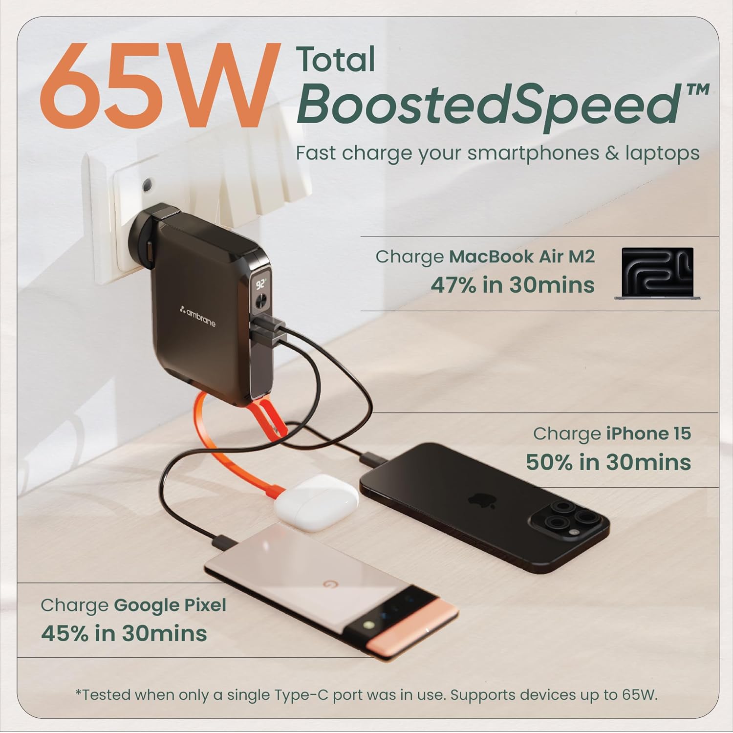 Universal Compatibility                                     <p class="a-size-small"> The AeroSync 65 offers universal compatibility, making it suitable for a wide range of devices. Charge your Android smartphones, iPhones, iPads, tablets, Type-C laptops, speakers, true wireless earbuds, and headphones with ease. </p>