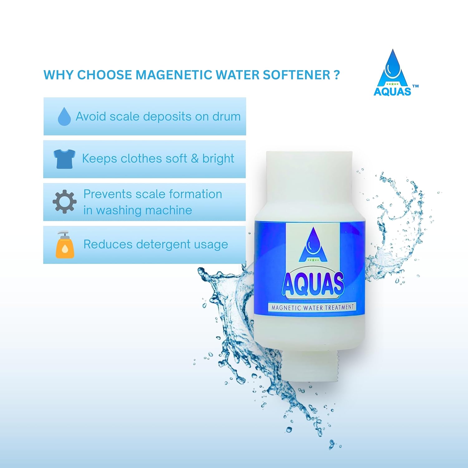 Our water has Active mineralsThese minerals will store deposits on washing machine Drum and Heater (also on thermostat)If scales fill the thermostat… then heater will not cut off heat…. then heater will get damagedThese minerals will not visible inside the Drum… it will store inside the TUB and on the drum…. Because of the scaling we get skin allergies and bad smells from washing machine To avoid this scale forming.. We have to install AQUAS MAGNETIC SOFTENER AQUAS MAGNETIC SOFTENER will suspend the minerals Suspended minerals can’t Stick or Deposits or Store on the DRUM, TUB, HEATER. SENSOR, THERMOSTATAfter the program the suspended minerals will go out in drain