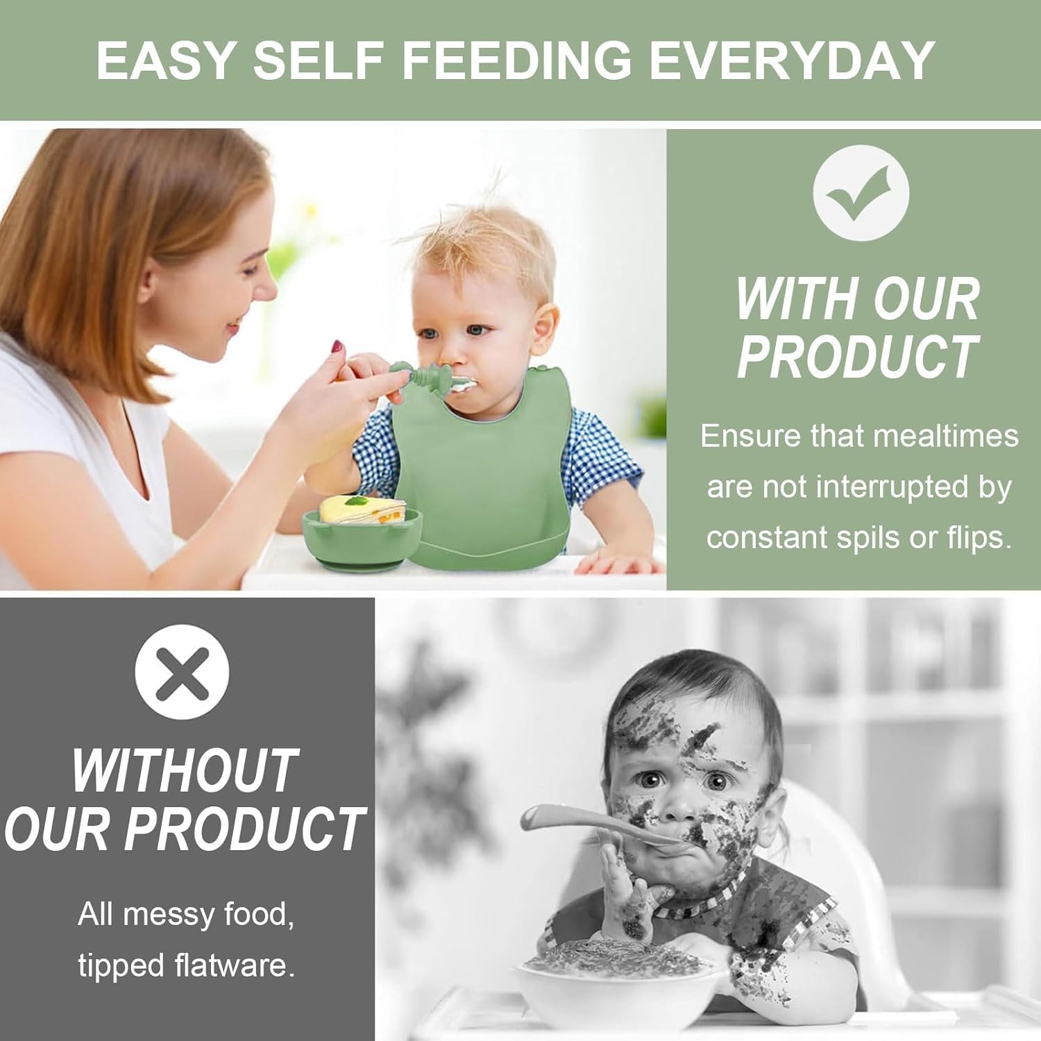 [FOOD GRADE SILICONE] : Our baby led weaning supplies are made of 100% food grade silicone, free of BPA, safe and non-toxic, that is safe for babies to use.