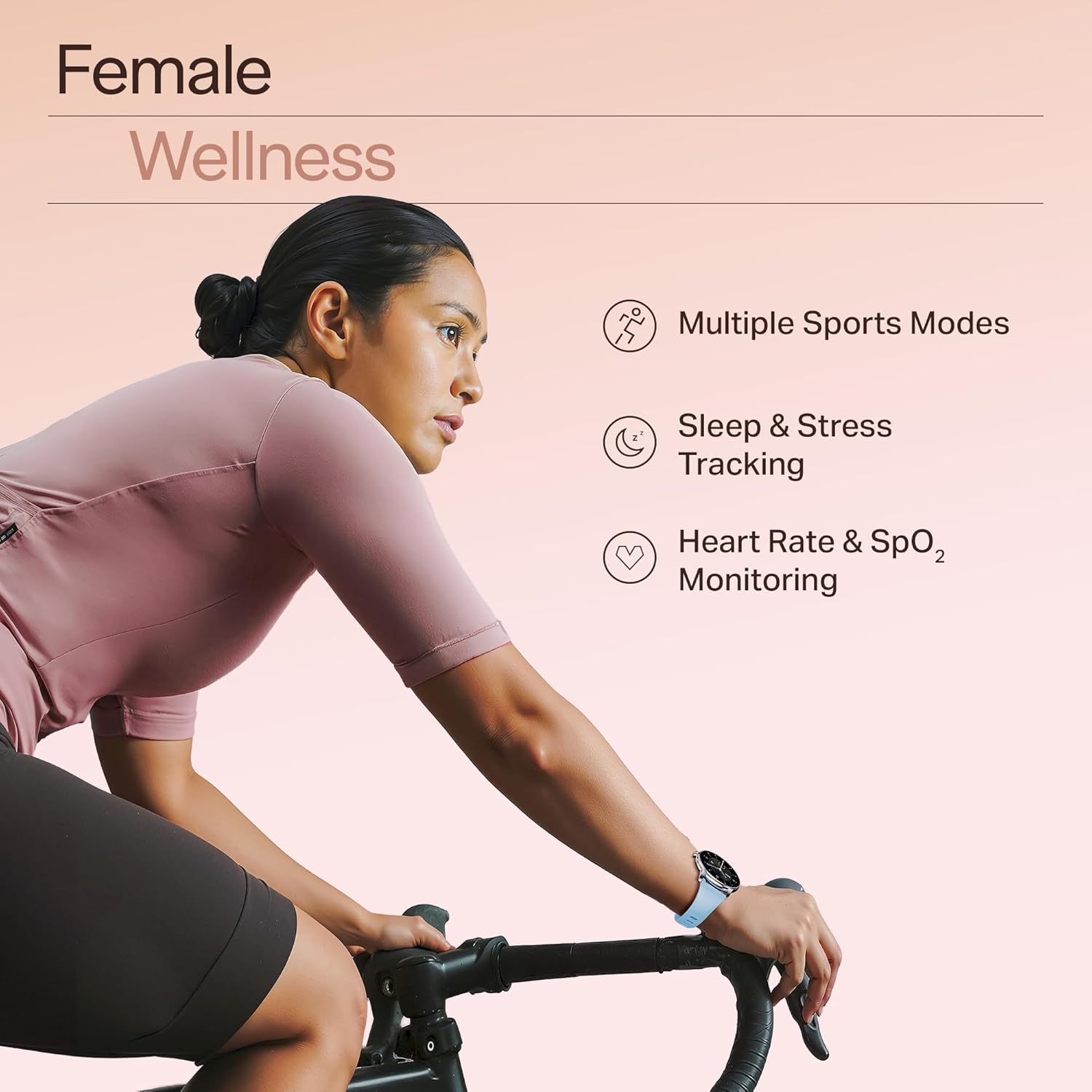 Multiple Sports Modes: Designed for strong, active and independent women, Chrome Iris supports a wide range of sports including Walking, Running, Cycling, Skipping, Badminton, Basketball, Football, Climbing, Tennis, Rugby, Golf, Yoga, Fitness, Dancing, Baseball, Elliptical, Indoor Cycling, Free Training, and Rowing Machine, making fitness tracking effortless for the fitness fanatic within you.