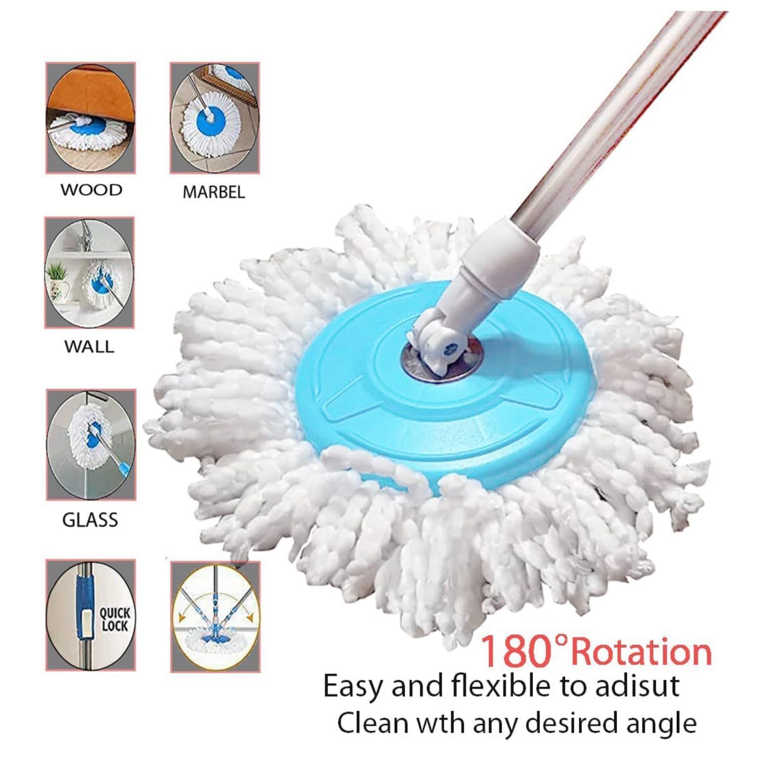 Upgrade your floor cleaning routine with this 360° Rotating Spin Mop, designed to make mopping effortless and efficient. Featuring a sturdy stainless steel rod with a comfortable blue grip handle, this mop stands at a convenient 40 inches (approximately 101 cm) tall, reducing back strain during extended cleaning sessions. The circular mop head measures 10 inches (approximately 25 cm) in diameter and comes fitted with a soft microfiber refill that absorbs dirt, dust, and spills with ease. The 360° rotating head allows you to reach tight corners, under furniture, and along skirting boards without any hassle. The microfiber refill is gentle on all types of flooring, including tiles, marble, hardwood, and laminate surfaces. Compatible with standard spin mop buckets, this mop stick makes wringing and re-wetting the mop head a completely hands-free experience. The telescopic stainless steel handle ensures durability and long-lasting use. Ideal for everyday household cleaning, this spin mop is a practical and reliable addition to your home cleaning essentials.