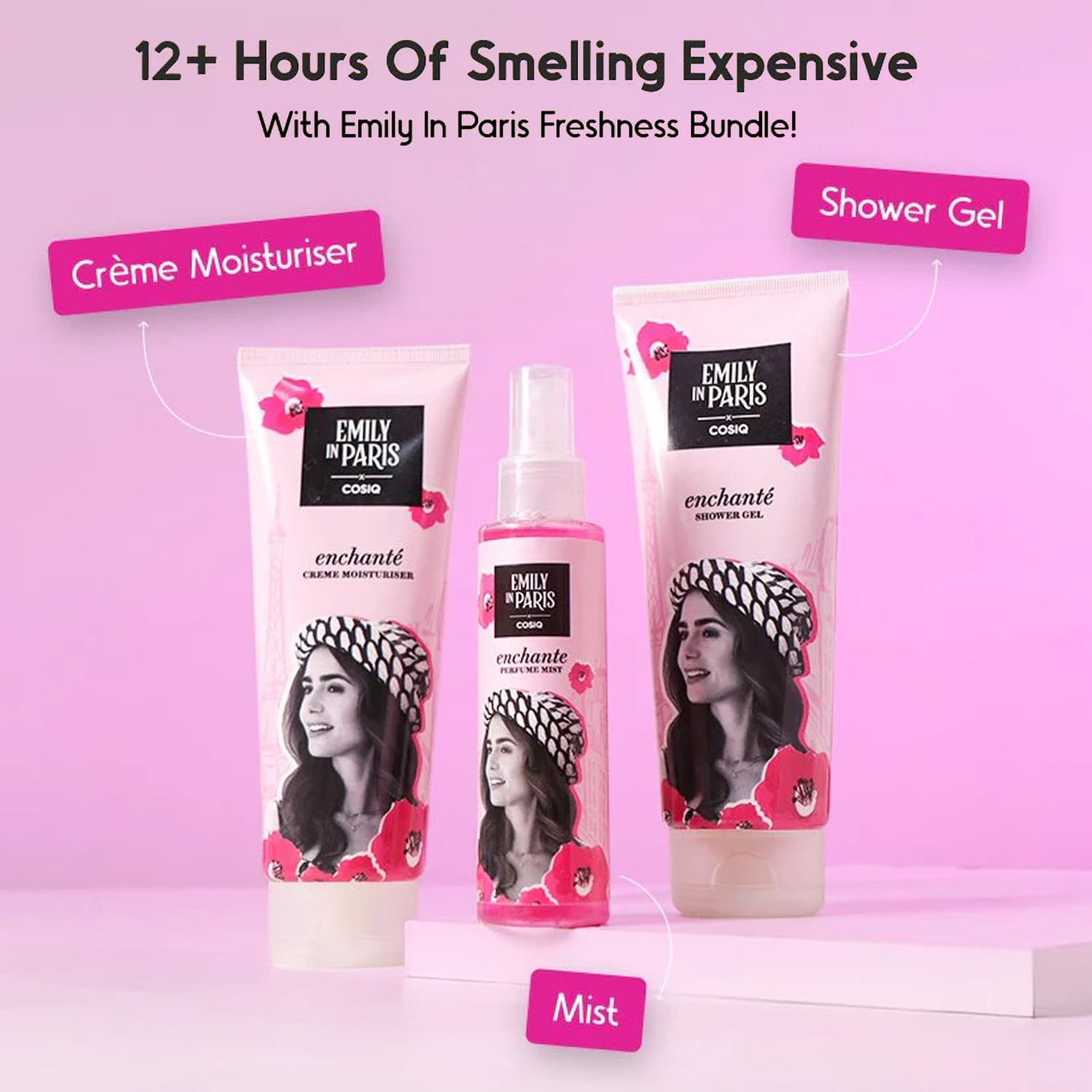Enchanté Everyday Beauty Collection: Includes a body mist, shower gel, and moisturizer, all infused with a soothing floral woody musk fragrance for an enchanting, long-lasting scent