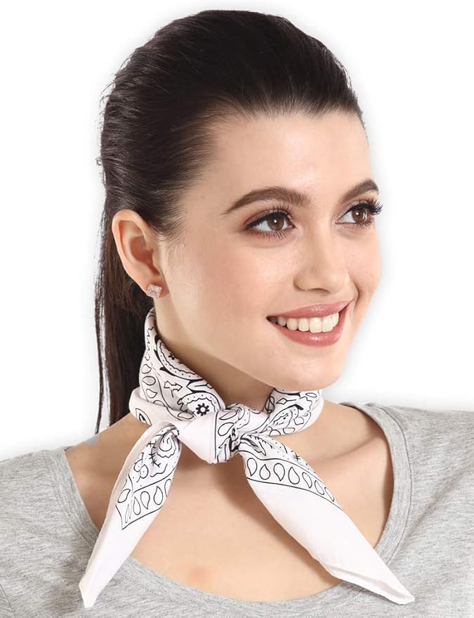 Transform your style with these versatile white cotton bandanas featuring a classic paisley print design. Perfect for multiple uses – wear them as a traditional bandana, face covering, head wrap, or neck scarf. The pack includes 2 identical bandanas crafted from 100% cotton material that offers both comfort and durability. The timeless black and white paisley pattern adds a sophisticated touch to any outfit, while the generous size provides ample coverage for various styling options. These multipurpose bandanas are suitable for both men and women, making them an essential accessory for everyday wear, festivals, outdoor activities, or fashion statements. The crisp white background with intricate paisley borders creates an elegant look that complements any attire. The lightweight cotton fabric ensures breathability and comfort throughout the day. These bandanas are easy to maintain and versatile enough to be styled in numerous ways to suit your personal preference.