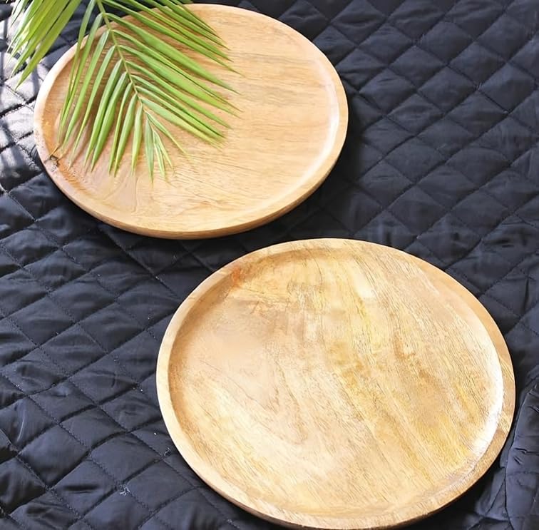 Handcrafted Mango Wood Dinner Plate and Nesting Bowl Set – Natural Grain Sustainable Serveware