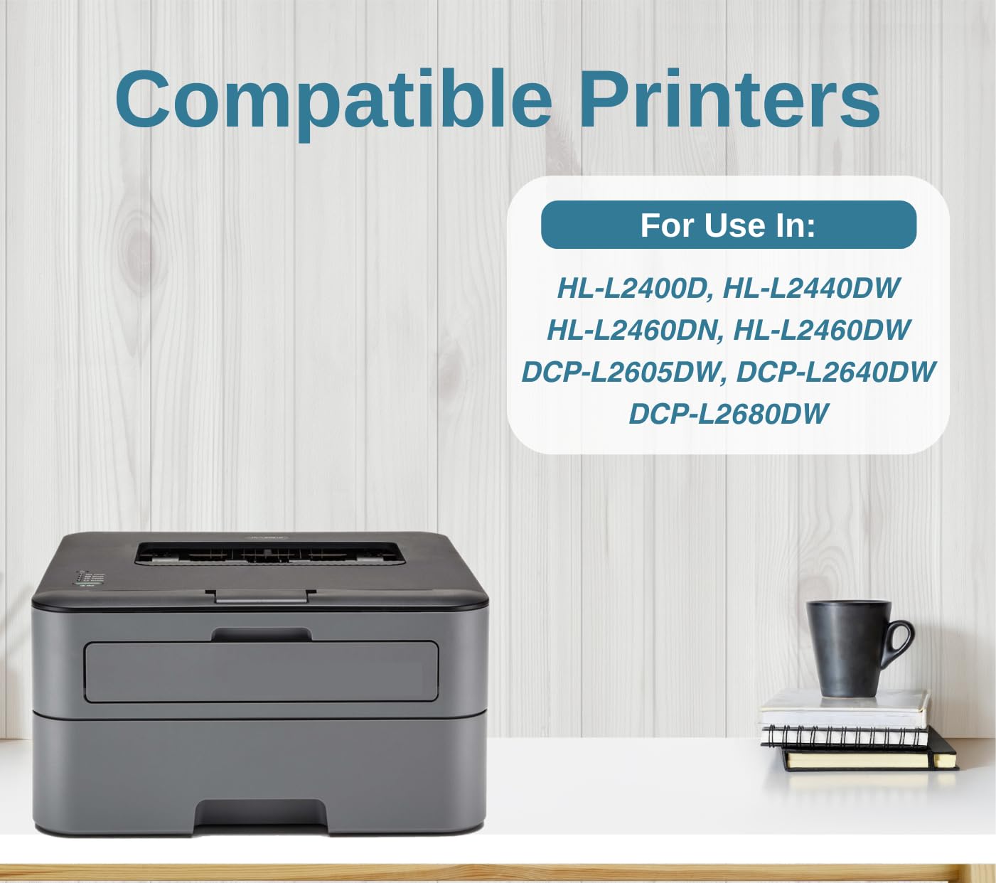 Seamless Compatibility: Compatible with Printers HL-L2400D, HL-L2440DW, HL-L2460DN, HL-L2460DW, DCP-L2605DW, DCP-P2640DW, DCP-L2680DW.