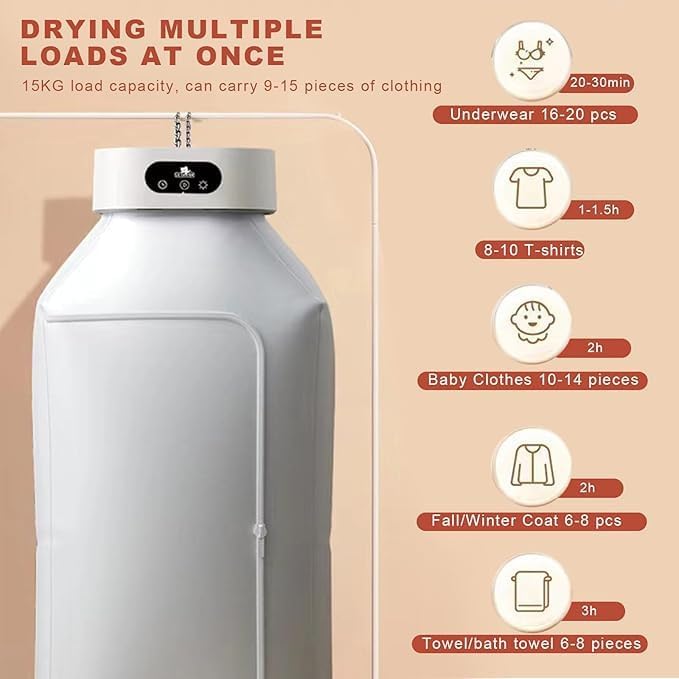 No more noisy drying cycles that disrupt your peaceful environment. on store mini dryer machine has a built-in timer and whisper-quiet functioning. With the timer feature, you can easily set the desired drying duration to suit your needs.