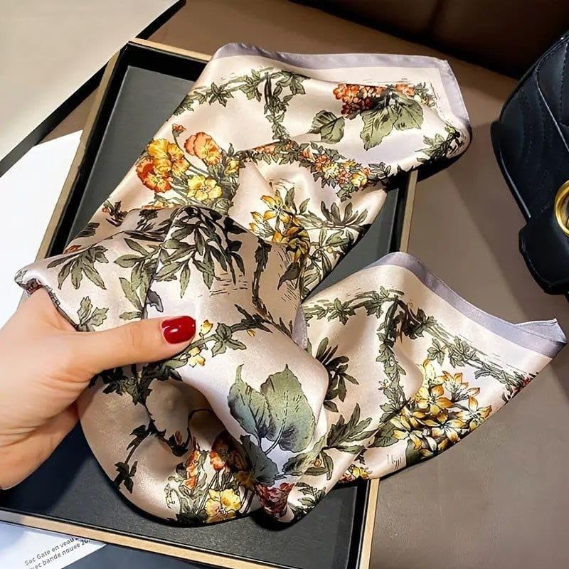 Home Accessories Elegant Floral Print Silk Scarf,...