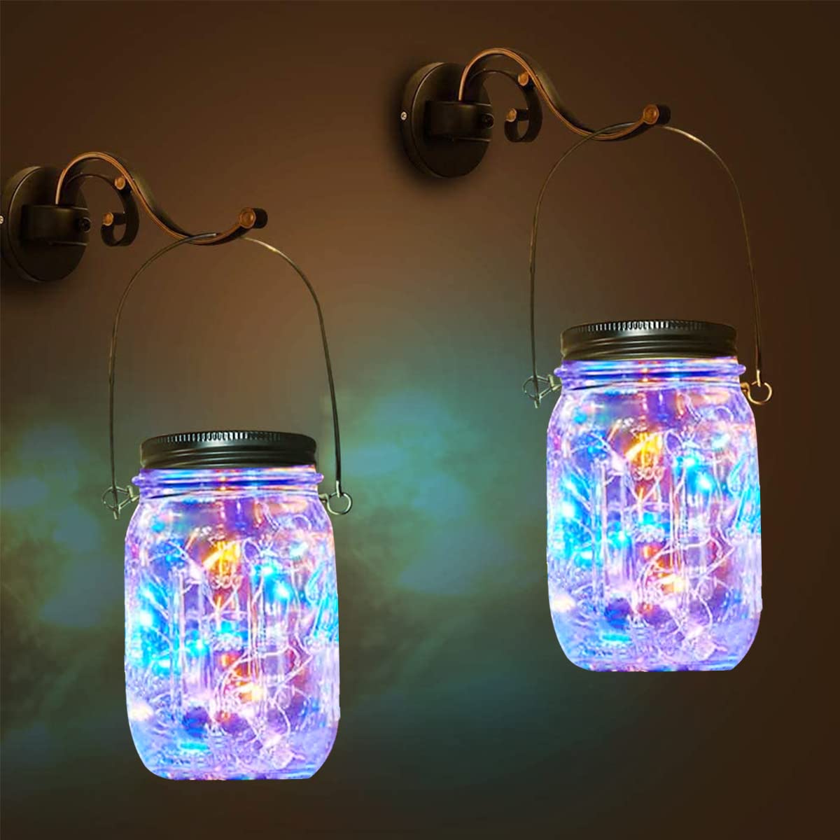 20 Leds Mason Jar Lights – Each of our hanging solar lights has 20 Leds, which are beautiful and bright in every occasion. Mason Jar Dimension: 3.2″ Dia. X 5.3″ H). Ideal for home, balcony, fence, driveway, Christmas tree decoration.