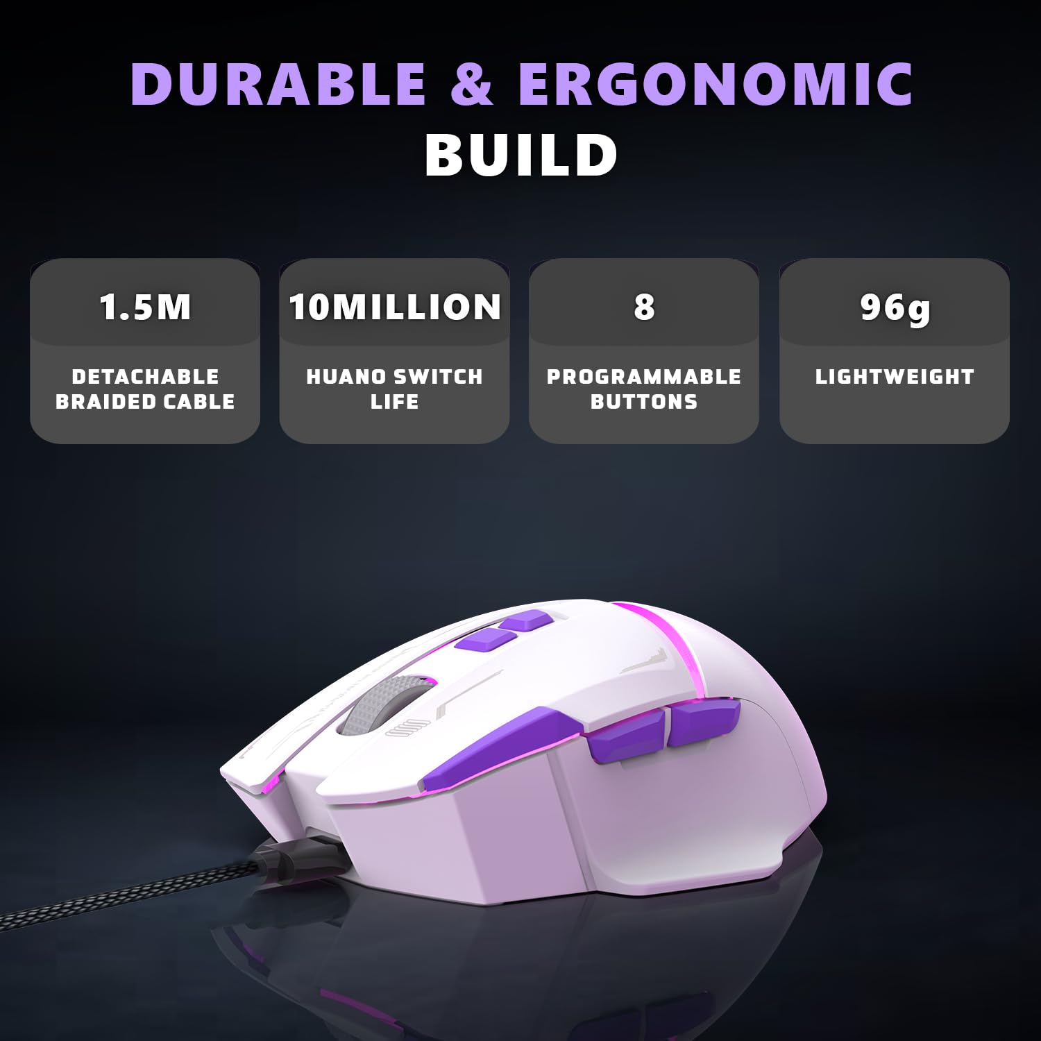 10 million-click Huano switches for durability and reliable performance.