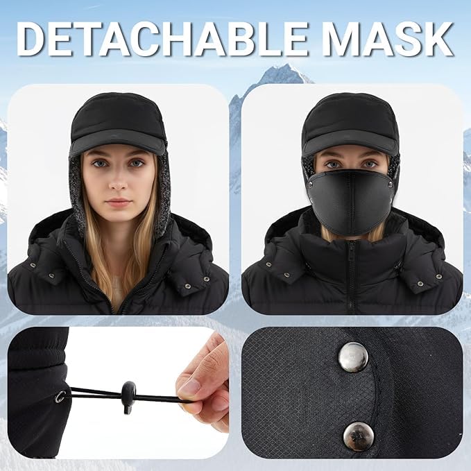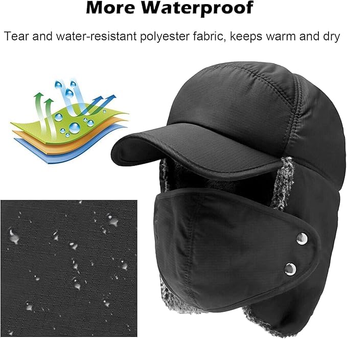 FLYNGO Fur Winter Cap for Man & Women Ushanka Russian Hat Super Warm Faux Fur-Lined Eskimo Cap with Fur Earflaps and Face Mask, Monkey Cap for Men Winter Wear Snow Cold Weather Trapper Hat