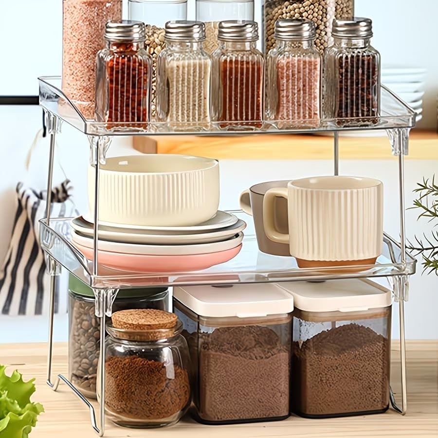 VERSATILE DESIGN: Multi-purpose storage rack perfect for organising kitchen items, pantry supplies, and cabinet contents with crystal-clear visibility
