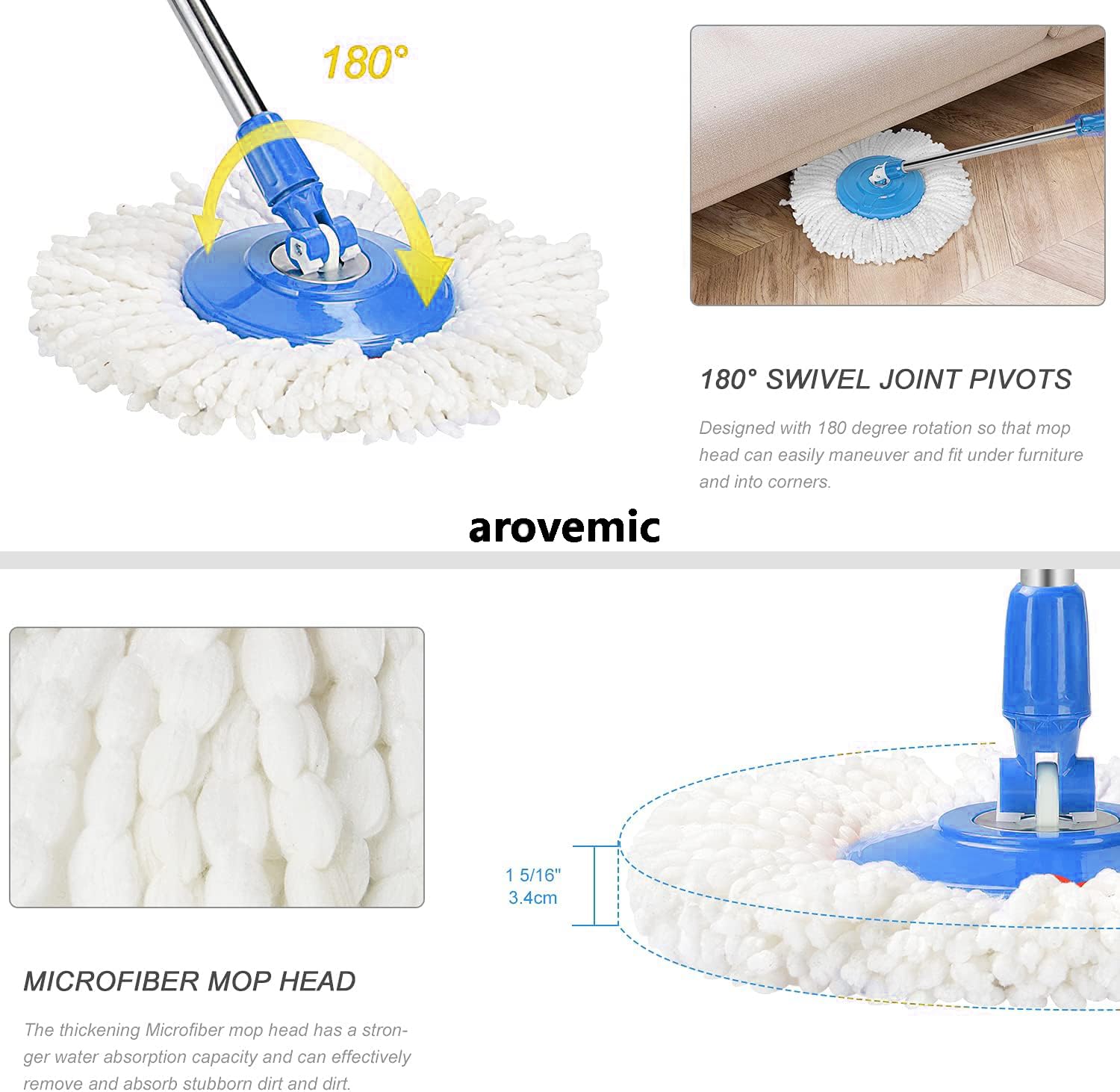 🔄 360° Rotating Mop Head Compatible – Supports rotation for easy cleaning under furniture and corners; works with most spin mop heads and refills.