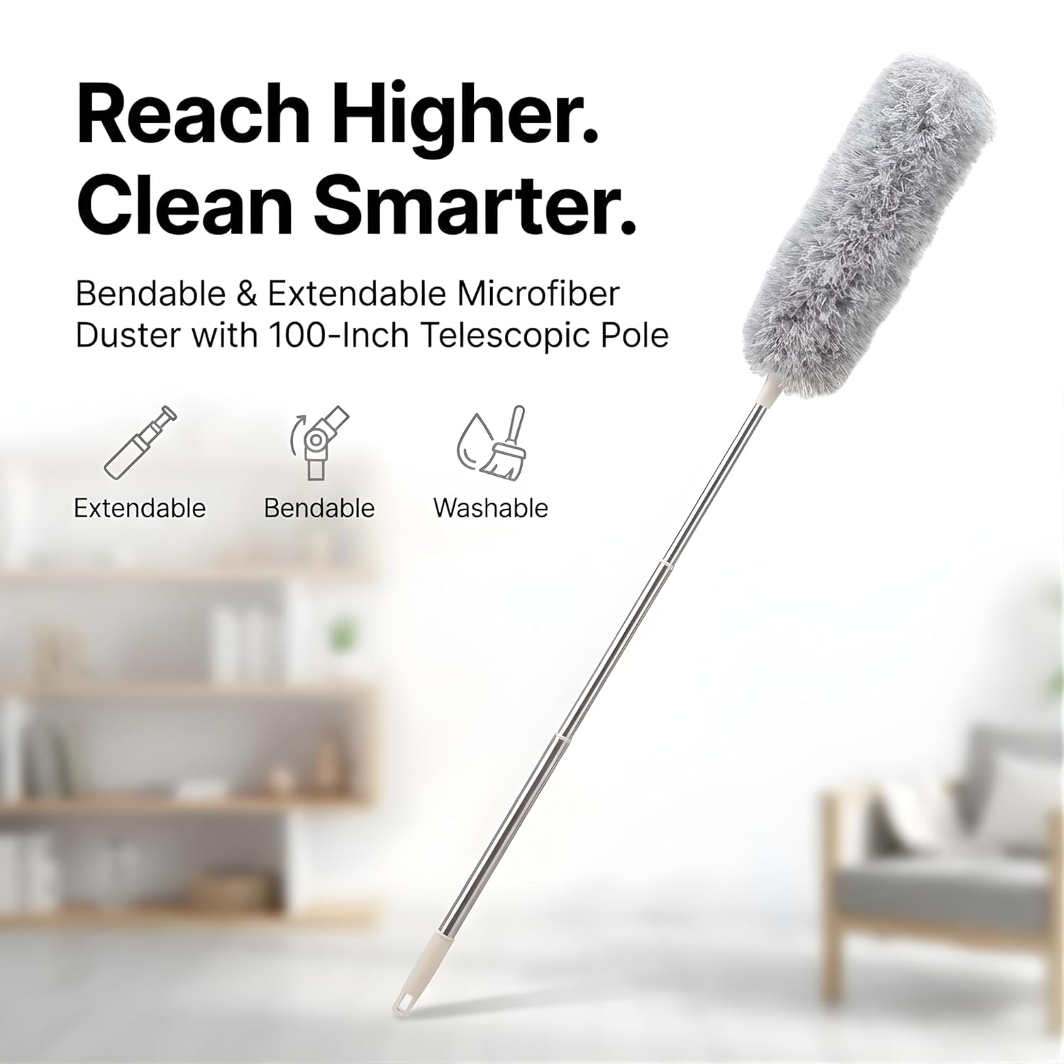 Extendable Long Pole- With high-quality 100-inch long stainless steel telescopic pole, you don’t need to take risks cleaning the high areas anymore, just use this duster for cleaning and extend the length of duster pole from 30 to 100 inches to clean the dust easily.