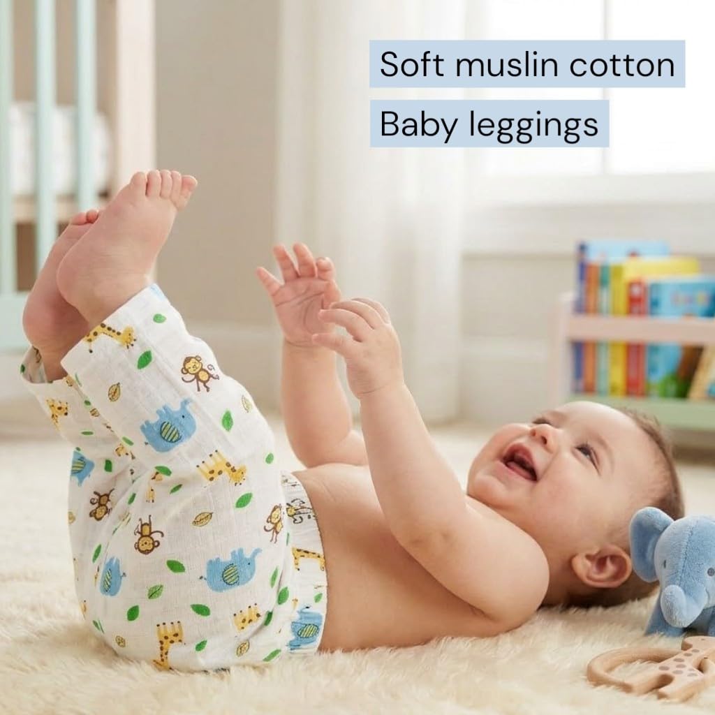 Fabrify Muslin Cotton Baby Pants are designed to provide exceptional comfort for your little one from newborn to 24 months. This pack of 3 multicolour pants features a specially designed diaper-friendly fit that comfortably accommodates nappies whilst allowing unrestricted movement for crawling, playing, and exploring. Crafted from premium muslin cotton fabric, these versatile bottoms are soft, breathable, and gentle on baby’s delicate skin, making them perfect for all-day wear across all seasons. The lightweight material ensures your baby stays comfortable without overheating, whether it’s summer or winter. These unisex pants are suitable for both boys and girls and can be worn as pyjamas, leggings, loungewear, or casual everyday bottoms. The elastic waistband provides a secure yet gentle fit that grows with your baby, ensuring ease of dressing and nappy changes without leaving marks. With a mid-rise style, full-length design, and medium-stretch fabric, these pants offer complete coverage and freedom of movement. The multicolour prints add a playful touch to your baby’s wardrobe. Machine washable and easy to maintain, these muslin cotton pants retain their softness and shape even after multiple washes, making them a practical choice for busy parents.