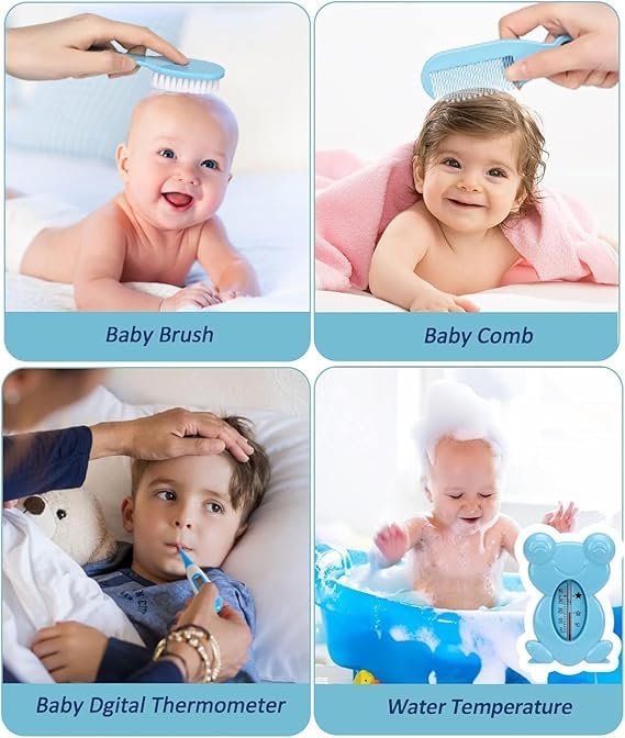 Comprehensive Tools: Includes a soft-bristle hairbrush, comb, nail clippers, scissors, a digital thermometer, a nasal aspirator, and more.
