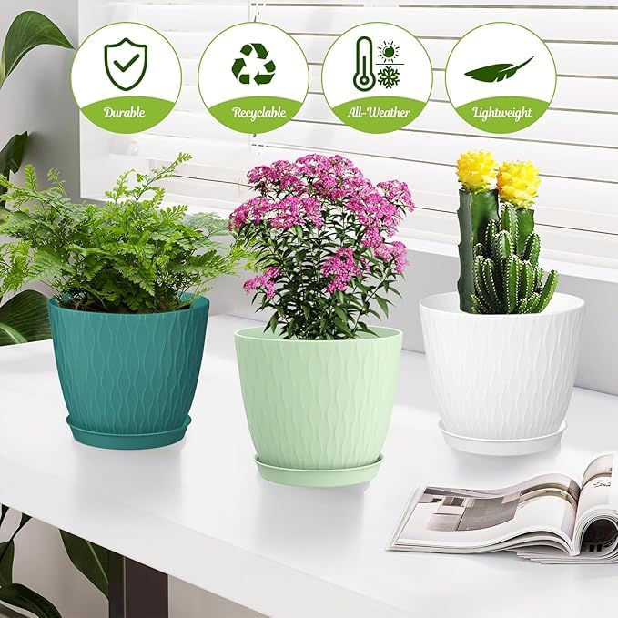 Lightweight and Easy to Maintain: These plastic planters are lightweight and easy to handle, making them convenient to move and rearrange as needed. They require minimal maintenance—simply wipe with a damp cloth to keep them clean. Suitable for both beginners and experienced plant enthusiasts, they provide a hassle-free gardening experience.