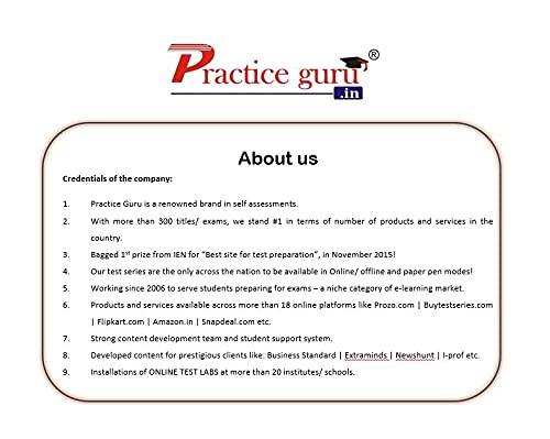 Get an Online test pack, with latest pattern and easy to use system on the specific topic you are preparing for. Buy this voucher and you will receive the LOGIN instructions on your email id. Practice Guru offers well researched question banks giving a lot of practice on the topic, making you confident over the same.