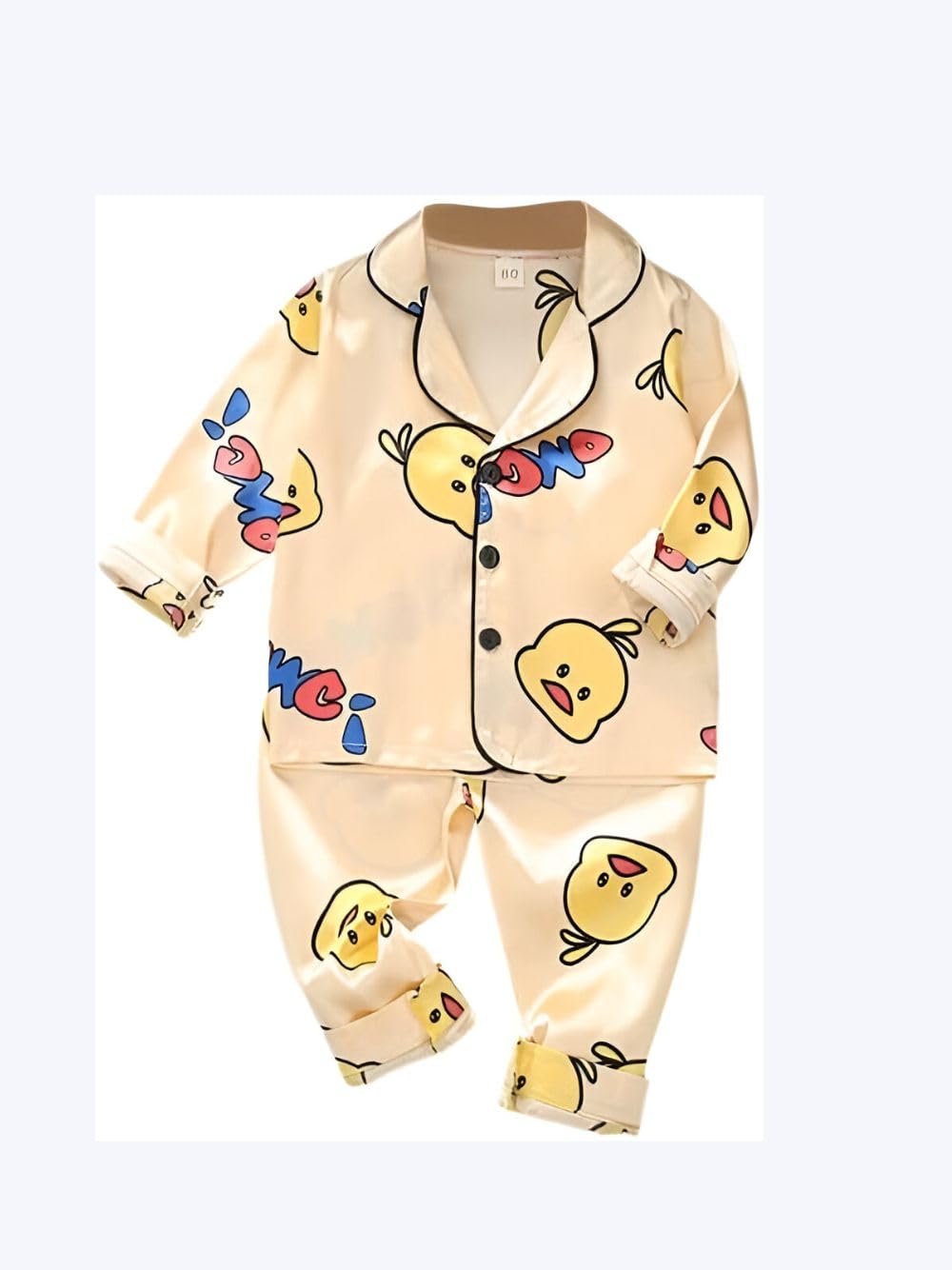The PAGHDAL BROTHERS Butterscotch printed Kids Night Suit blends comfort, style, and practicality to provide a delightful sleepwear option for boys and girls. Crafted from hosiery fabric, these night suits are exceptionally soft, ensuring a gentle touch against children’s skin for a comfortable sleep experience. The fabric’s breathability and stretchability make it suitable for various climates and activities, allowing unrestricted movement during play or rest. Each set features adorable Butterscotch prints that add a whimsical charm, appealing to children’s imaginations and making bedtime fun. Designed with long sleeves and pants, the night suits offer warmth and coverage, perfect for cooler nights or air-conditioned environments. The meticulous attention to detail in stitching and finishing ensures durability, promising long-lasting wear and maintaining the fabric’s softness wash after wash. Versatile and stylish, these night suits are suitable for both casual lounging at home and bedtime routines, catering to the comfort needs of young children while incorporating trendy design elements that parents appreciate. The PAGHDAL BROTHERS Butterscotch Rabbit printed Kids Night Suit stands out as a reliable choice for parents seeking comfortable and stylish sleepwear for their children, combining functionality with playful prints that enhance the overall bedtime experience.