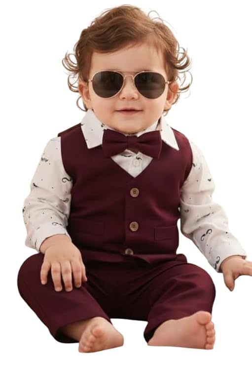 Procyon Baby Boys and Girls Solid Cotton Blend Blaze Style T Shirt and Pant Set with Bow Tie Toddlers for Kids 3-Piece Outfit for Kids Party, Wedding & Casual Wear (Maroon) ₹499.00 Original price was: ₹499.00.₹460.00Current price is: ₹460.00.