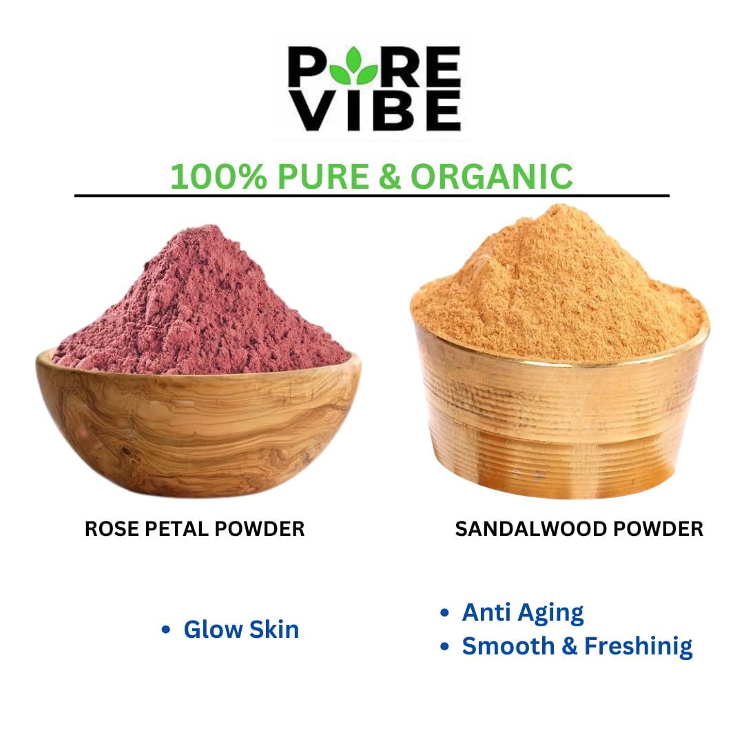 100% Pure & Organic – Premium rose petal powder and sandalwood powder, sourced naturally without additives or chemicals.