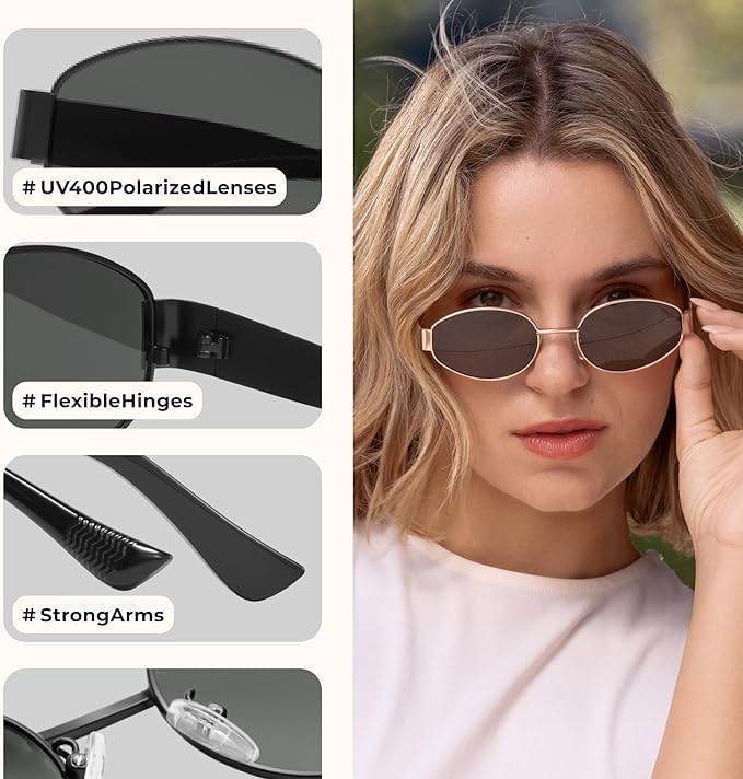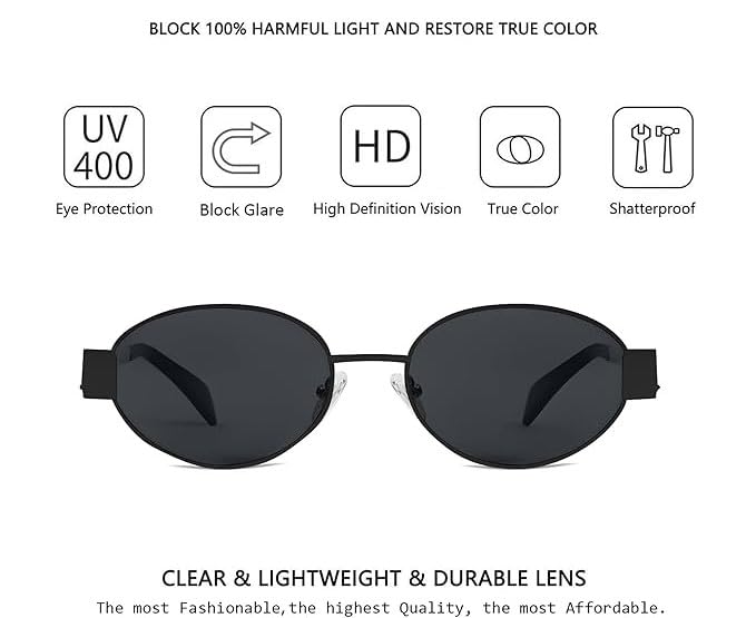 Retro Oval Sunglasses Introducing the Legend eyewear Retro Oval Sunglasses for women and men. Featuring a sturdy metal frame, PC lenses with UV400 protection, and soft silicone nosepads, these sunglasses offer both style and comfort. The durable metal hinges ensure smooth functionality, while the trending oval shape adds a vintage touch. Designed with comfortable legs for all-day wear, these sunglasses come in four colors: Gold Frame with grey, lenses. your style with confidence!