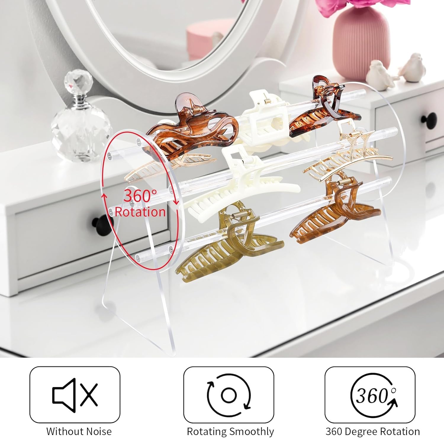 360 Degree Rotatable Design: This transparent hair clip organizer has smooth and flat surface, rounded corners, with 360 degree rotatable design, it can be smoothly rotated to different angles, easy to store and observe, organize your various claw clips and tiaras, easy to reach and store, while keeping your hair clips neat and organized.