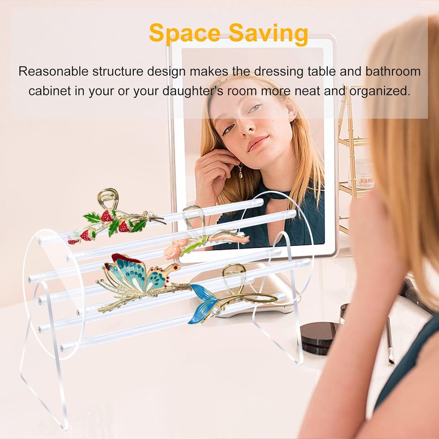 Claw Clip Organizer is crafted from durable acrylic, this organizer combines elegance with functionality, providing a chic display that enhances your decor while securely holding all your favorite clips.Designed to hold a variety of hair clips and accessories, keeping them organized and accessible, which saves time and reduces frustration during your daily grooming routine.Easily access all your hair clips with this innovative design, allowing effortless browsing and organizing from any angle—perfect for quick styling and efficiency.