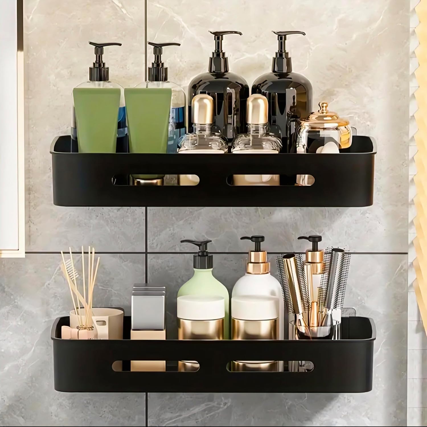Keep Your Bathroom Organized : The Thick Railing On The Shelf Ensures That It Holds Big Objects. These Bathroom Shelves Are Designed For Organizing Your Ideal Wall Spaces, Ideal For Storing Your Bath Essentials Like Shampoo, Body Wash, Cream, Soap And More With Its Curved W-Shape.