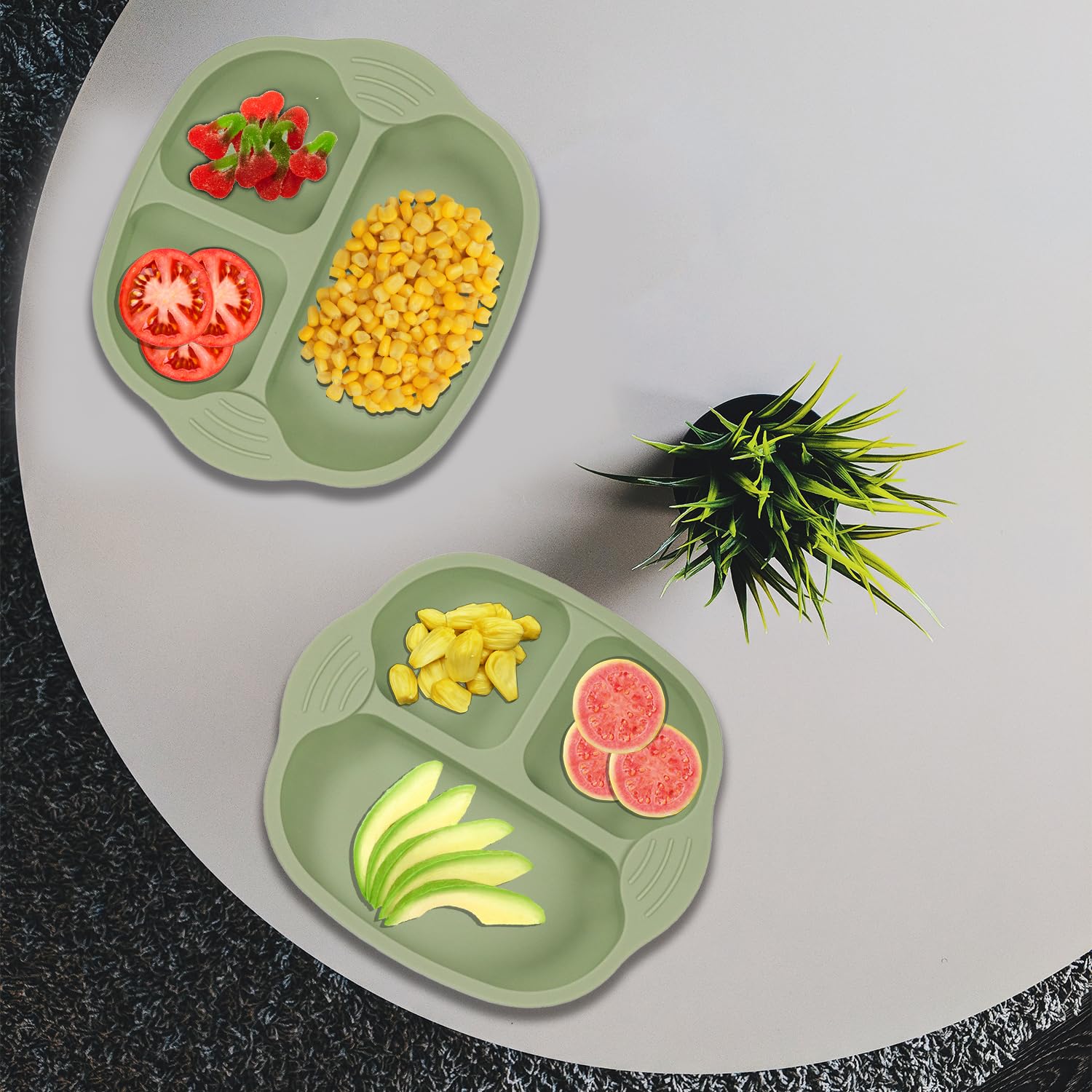 TODDLER PLATES – give your little one more independence at mealtimes with their very own silicone plate featuring 3 divided sections. The non-slippery with sunction design will prevent plates from skidding. Use a bit of water under suction before using for best results.