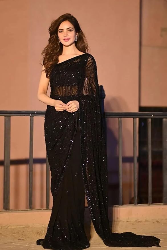 Drape in Elegance: Stunning Black Sequined Saree for a Glamorous Look!