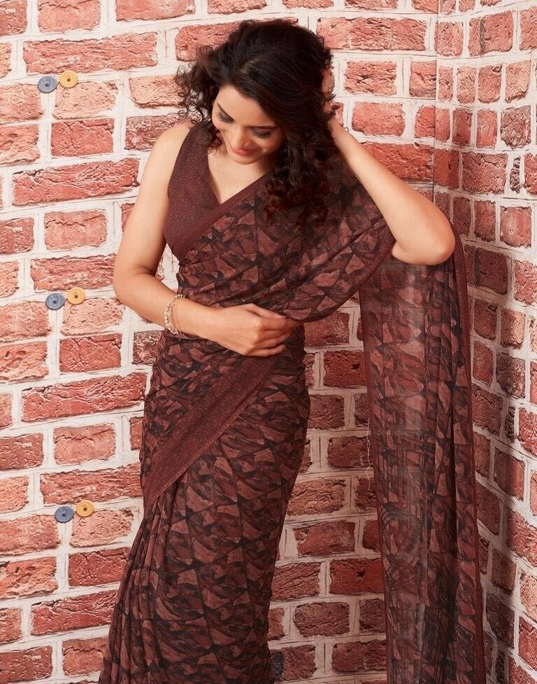 Price: (as of – Details) Cream and black colour Tie & Dye print saree. Modern era soft satin fabric saree.