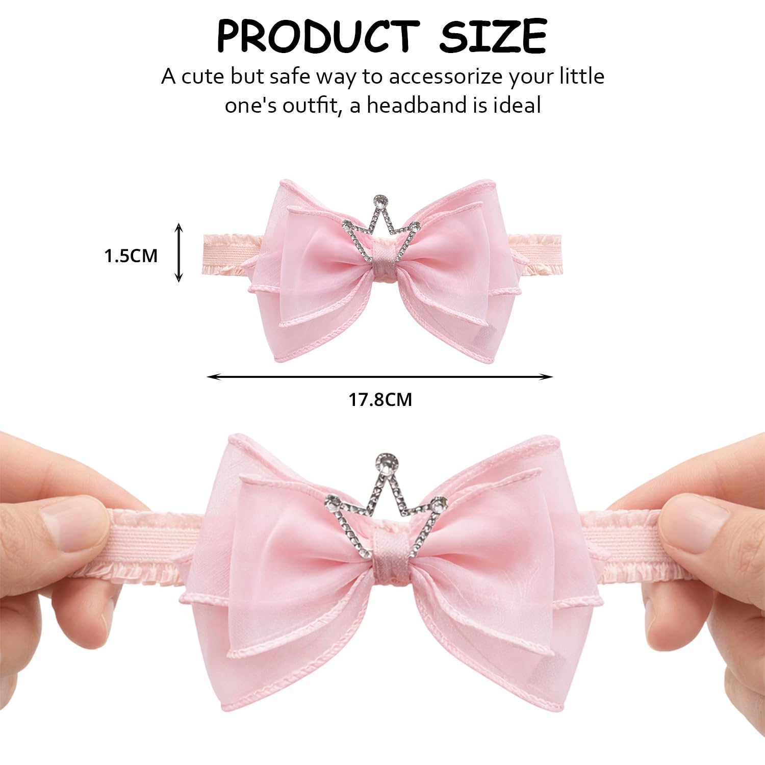 Adorable Designs: Comes in a pack of 3 elegant styles — including a glitter crown, satin bow, and tulle butterfly bow — perfect for dressing up your baby girl for any occasion.