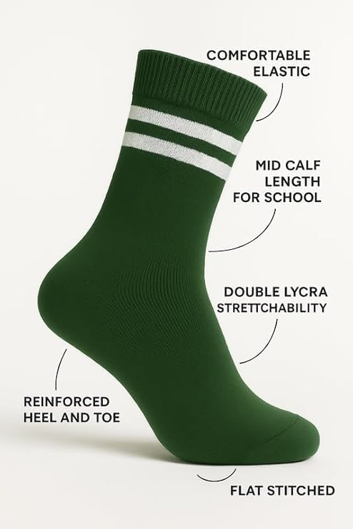 Wens Strips School Socks for Girls, Boys, Kids & Men of All Ages (Pack of 3) | Heavy Elastic, Streachable & Comfortable Fit | Calf Length Uniform Socks | Anti Odour | Unisex