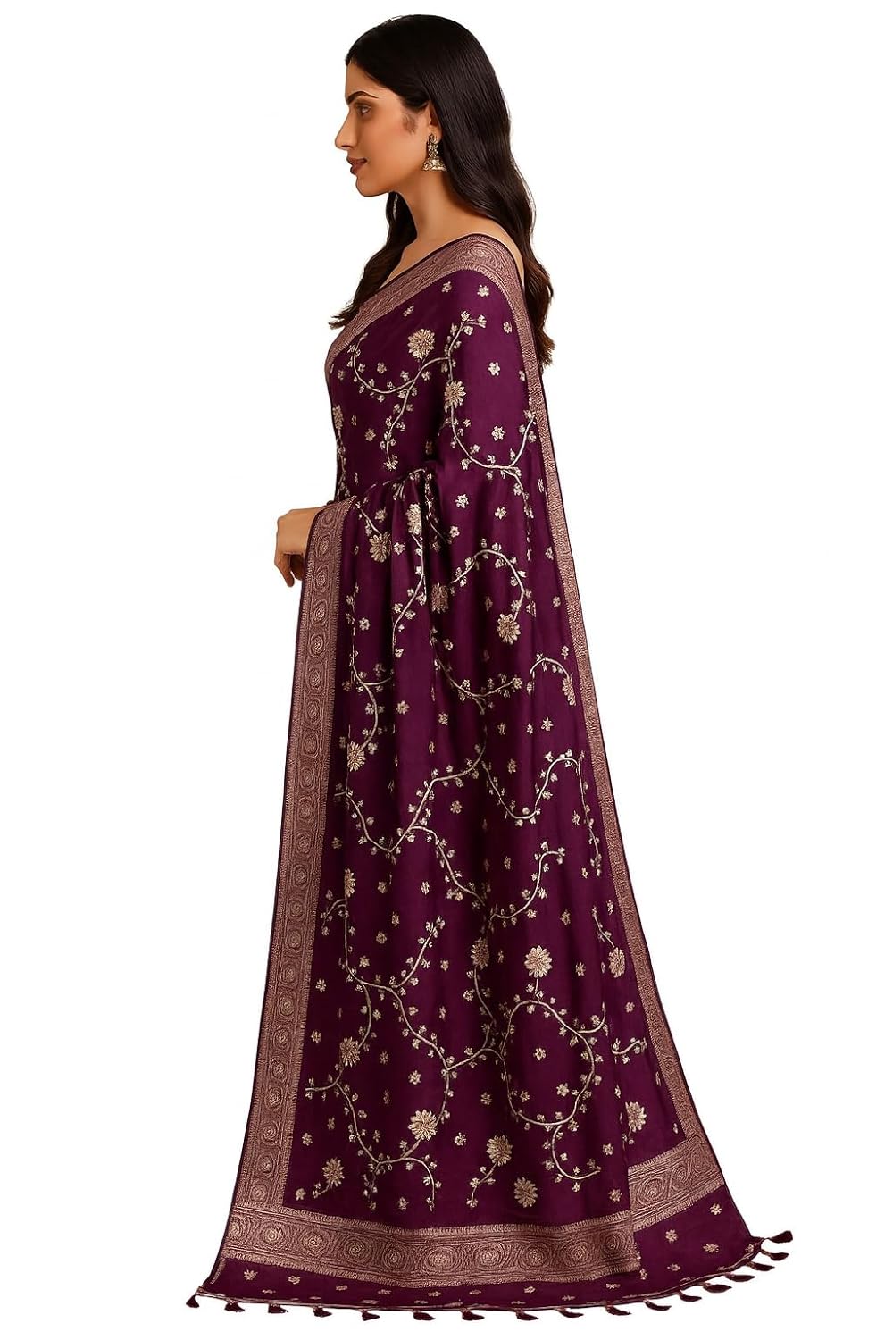 Price: (as of – Details) Elevate your traditional wardrobe with this elegant Japan Satin Silk Saree from BIGIICO, crafted to