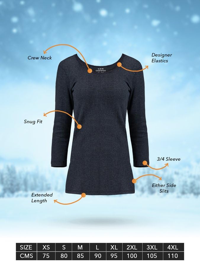 Lux Champion Women’s Thermal is designed to keep you comfortably warm through cold winter days while feeling soft and gentle on the skin. Made with a comfortable, insulating fabric, this thermal top helps retain body heat without feeling heavy or restrictive. The smooth texture ensures irritation-free wear, making it ideal for long hours of daily use. Its well-balanced fit allows easy layering under winter clothing while still providing sufficient coverage and ease of movement. Thoughtfully constructed for everyday winter wear, this thermal offers dependable warmth, lasting comfort, and a confident feel whether worn at home or outdoors.
