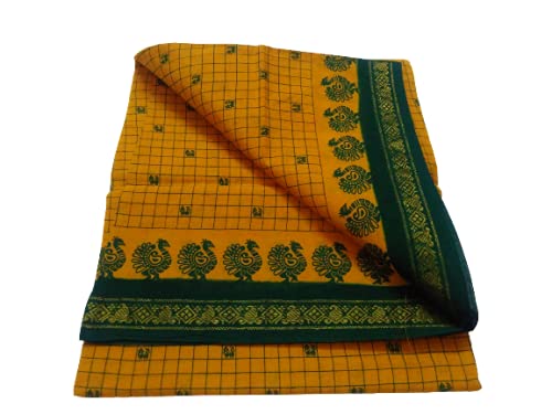 In Madurai sungudi sarees are made in pure cotton and generally Present generation of women prefer to wear these sarees due to its soft and suitable for drapability and enhance the aesthetic look. Sungudi saris are traditional cotton saris from Tamil Nadu. There are defined by the pattern of block prints and tie and dye designs. The origins of Sungudi can be traced back to the Sourashtrians who brought the art with them when they migrated to South India. The dots in the saris are said to be inspired from the cosmos which is why most sungudi saris remind one of a starry night. A special characteristic of the Sungudi saree is that the knots created along the lines of the fabric cloth with In the traditional dyeing process, vegetable dyes are used to obtain different colours. However, in the modern dyeing process artificial chemical dyes (aniline) like alizarine red, napthol and indigo are used to obtain the red, blue and other colour effects.